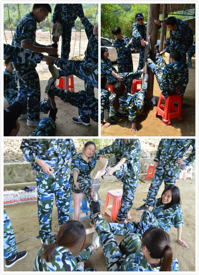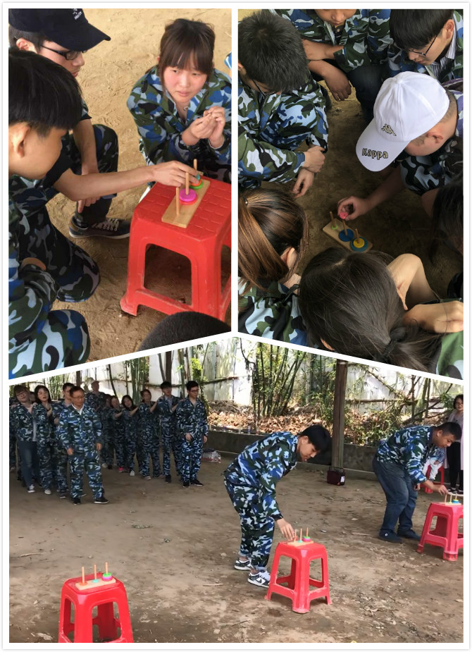 随后,教练带领大家开始了一天的拓展训练。首先进行的是步步高升,游戏前,队员们积极探讨游戏策略、发表自己的看法与见解。游戏中,随着高度的增加,各队队员一起努力,相互帮助、鼓励,完成了最高12只脚的任务。